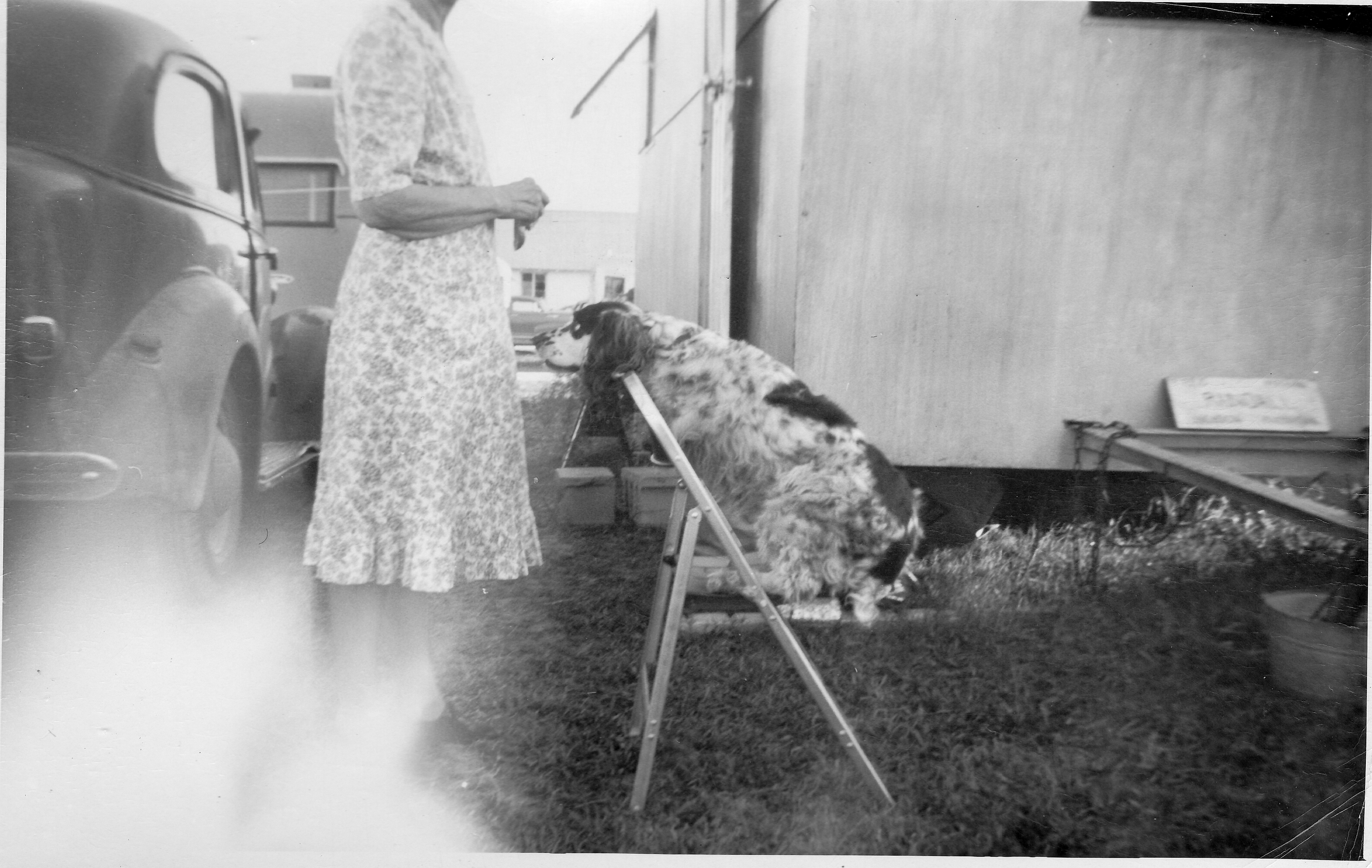 Previous image Index Next image Mother Marian with Freckles & Fred's homemade mobile home at Prudenvulle Park.jpg